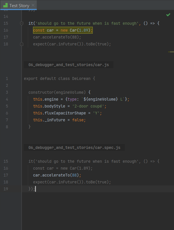 Wallaby only re-runs tests that are affected by your most recent code changes, regardless of whether the files are uncommitted, in source control, or unsaved. This makes Wallaby the fastest JavaScript test runner available today. Let’s see it in action.